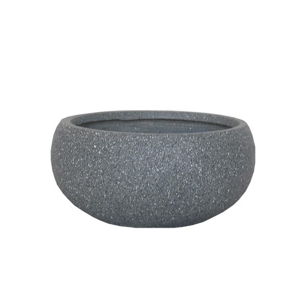 Textured Concrete Effect Grey Bowl Outdoor Planter by Idealist Lite D30 H14 cm, 9.9 ltrs Cap.