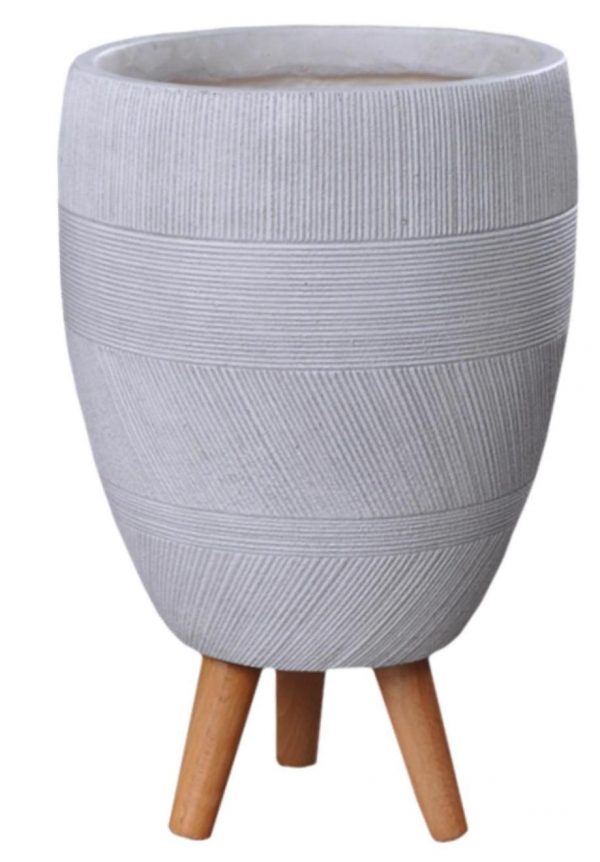 Striped White Indoor Egg Planter on Legs by Idealist Lite D27 H43 cm, 15.2 ltrs Cap.