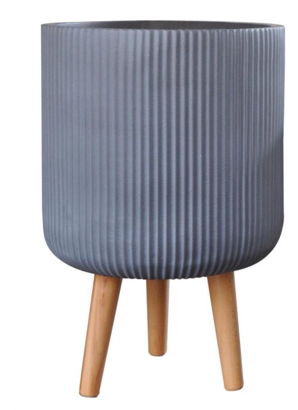 Ribbed Grey Cylinder Indoor Planter on Legs by Idealist Lite D25.5 H36 cm, 10.4 ltrs Cap.