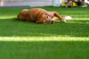 All Green as Grass artificial turf products are fully UV protected so that they don’t fade or discolour in strong sunlight. Manhattan has the additional feature of a pet-friendly PU backing. Laid onto a subbase of Zeolite aggregate, it’s wonderfully odour repellent and therefore perfect for pets.